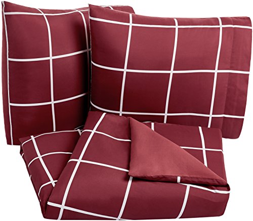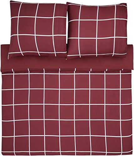 AmazonBasics bedlinnen set, microvezel, 155 x 200 cm, wijnrood, eenvoudig geruit