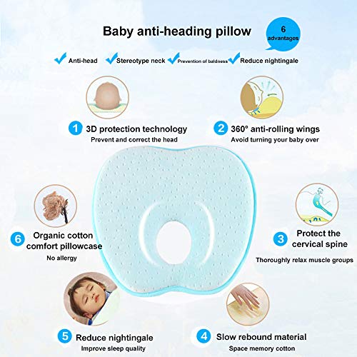 Baby Kussen – Voorkomen Platte Hoofd Syndroom (Plagiocephaly) voor uw pasgeboren baby, Gemaakt van Memory Foam Head…