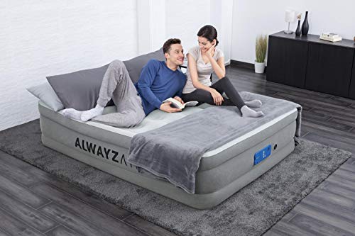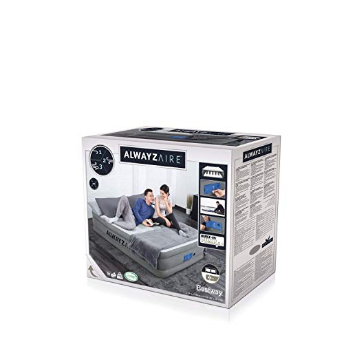Inhoud levering: Bestway AlwayzAire opblaasbaar logeerbed, met geïntegreerde elektrische pomp (220-240 V), incl. draagtas en reparatiepleisters, materiaal: vinyl, afmetingen: 203 x 152 x 46 cm, grijs