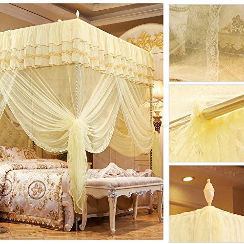 Specification: DEWIN Muggennet, luxe prinses drie zijopeningen palen bed gordijn baldakijn filetwerk bednet baldakijn beddengoed geen…