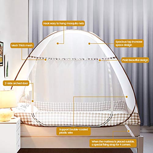 GEEN TE INSTALLEREN: Dit bednet is gemaakt van polyester gaas met fijne mazen en dubbel stalen draadframe. Met automatisch pop-up ontwerp en dubbele gebogen deur is het gemakkelijk te in- en uittrekken; Vouw en bewaar het wanneer het niet in gebruik is; uitgevouwen formaat (BxL×H): 150×150×200cm, vouwgrootte: ongeveer 58 (diameter) × 2 cm.