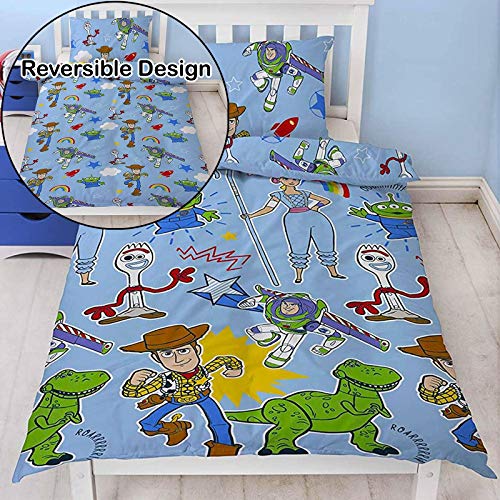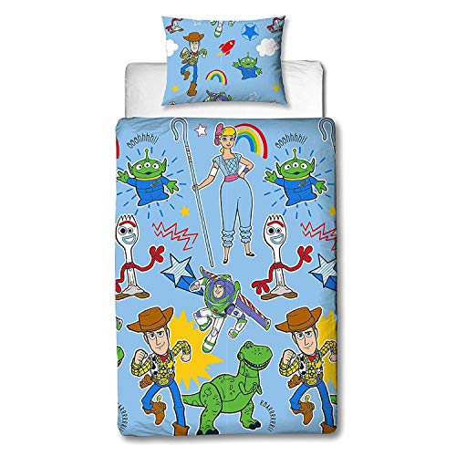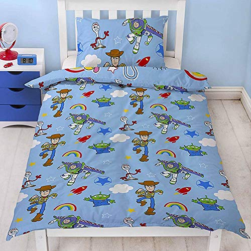 Specification: Disney Official Toy Story 4 Single Roar Design | Blauw Omkeerbaar 2-zijdig beddengoed dekbedovertrek met Woody & Buzz…
