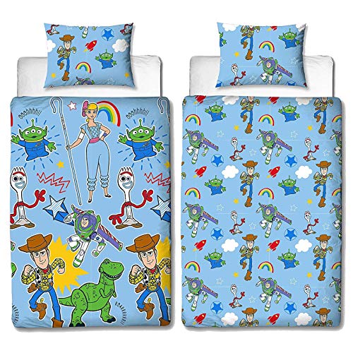Disney Official Toy Story 4 Single Roar Design | Blauw Omkeerbaar 2-zijdig beddengoed dekbedovertrek met Woody & Buzz…