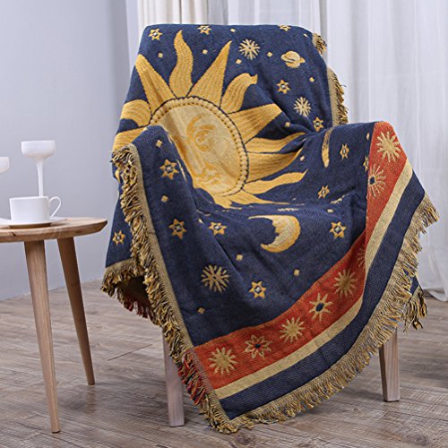 Specification: eazyhurry 100% Puur Katoen Zon Maan Geweven Gooi Deken Met Decoratieve Franjes Super Zachte Sofa Deken Home Decor voor…