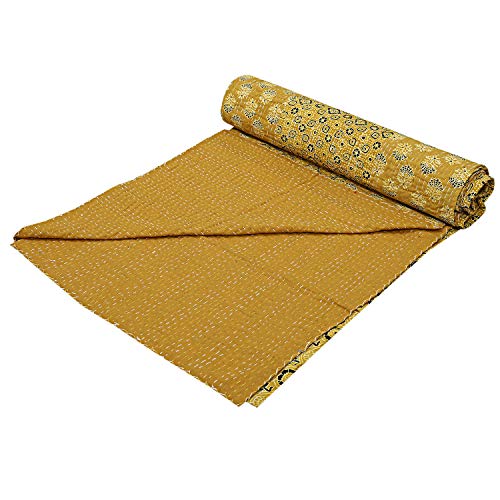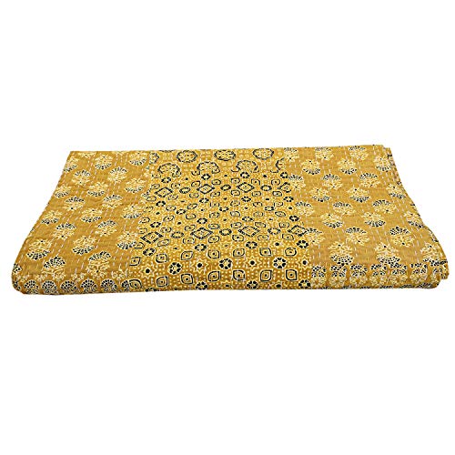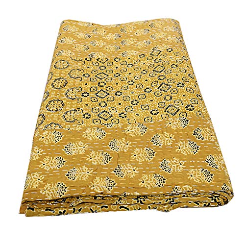 Specification: Etnische Handgemaakte Ajrakh Kantha Quilts Queen Hand Gewatteerde Kantha Beddengoed Sprei Hippie Hand Gestikte Gele…