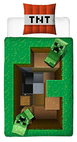 Cool-e Minecraft omkeerbaar beddengoed set groen Creepers TNT met 2 leuke motieven Minecraft figuren op voor- en achterkant puntige haak voor de kinderkamer