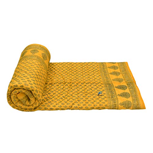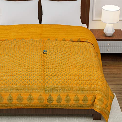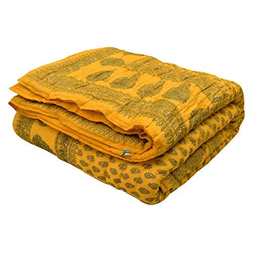 Specification: FEELRAX Jaipuri Razai Indiase Handgemaakte Goud Gedrukt Droog Puur Katoen Lichtgewicht Spreien Coverlet Etnische…