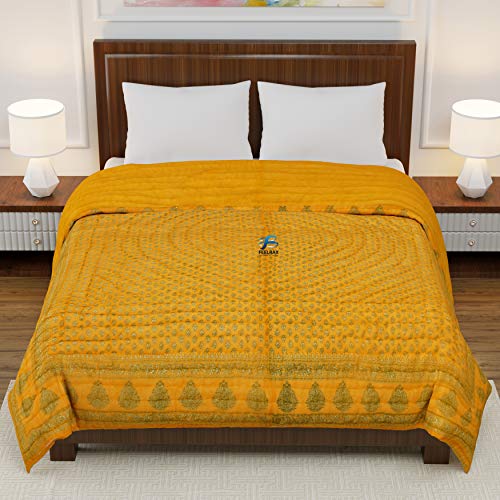 FEELRAX Jaipuri Razai Indiase Handgemaakte Goud Gedrukt Droog Puur Katoen Lichtgewicht Spreien Coverlet Etnische…