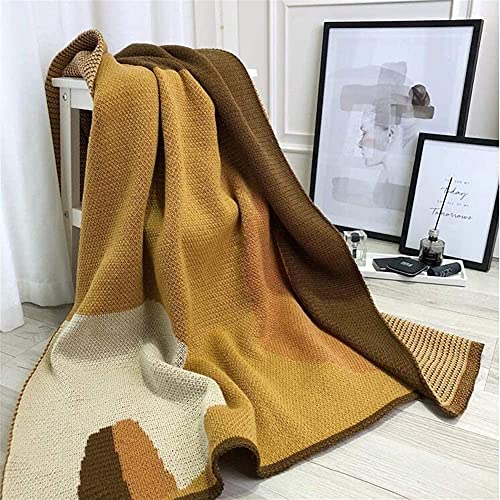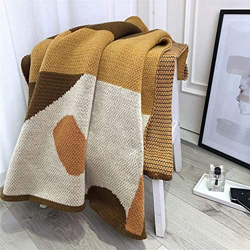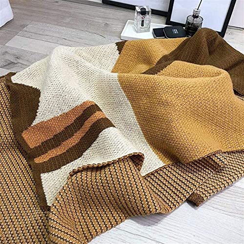 Specification: Geometrisch patroon gestreept zacht en stijlvol polyester gebreide plaid voor sofa fauteuil, 47.2 X 66.9 Inch
