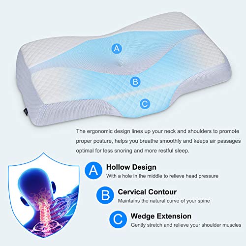 Specification: HOMCA Memory Foam Kussen Orthopedisch Hoofdkussen Ergonomisch Traagschuim Neksteunkussen ter Ondersteuning van Nek…