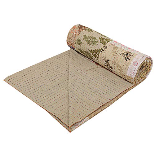 Janki Creation Indiase Kantha Bed Cove Omkeerbare Patchwork Katoen Handgemaakte Sprei Gooi Khambadiya Patchwork Sprei…