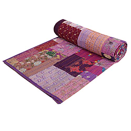 Janki Creation Vintage Indiase Katoen Khambadiya Bed Cover Queen Patchwork Kantha Sprei Gooi Hand Gestikte Beddengoed…