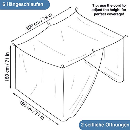 LICHTGEWICHT & GROOT FORMAAT! Het net weegt slechts 510 gram en heeft een formaat van 180 x 200 x 180 cm. Een compacte draagtas en ophangset zijn bijgevoegd.