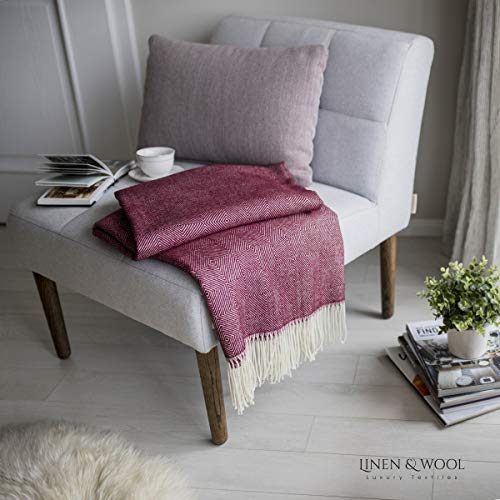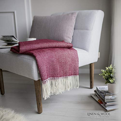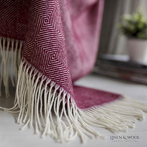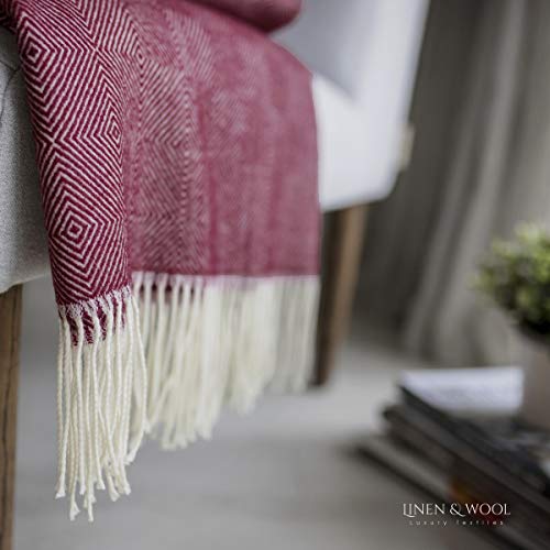 Specification: Linen & Cotton Warme Zachte Wollen Deken Merinowol Woondeken Knuffeldeken Diamond met Diamant Patroon – 100% Merino Wol…