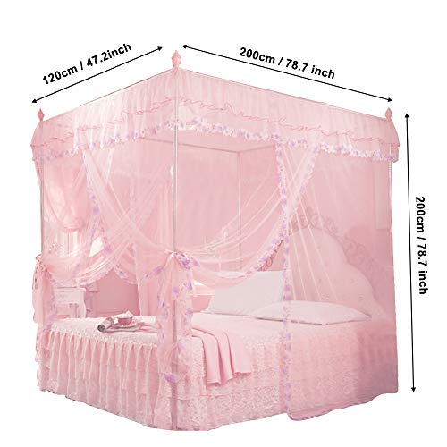 Liyeehao Klamboe, 4-hoekpostbed, luifel, bedgordijn voor meisjes en volwassenen – 3 opening klamboe luxe prinses…