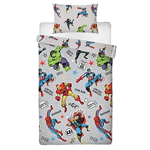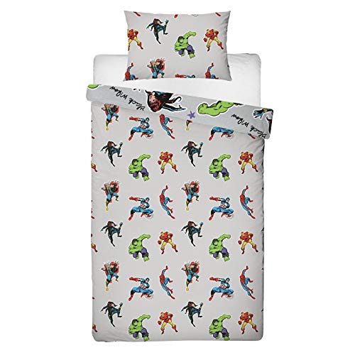 Marvel Comics Officieel grijs eenpersoonsdekbedovertrek design | Spiderman, Captain America, Hulk-design, omkeerbaar…