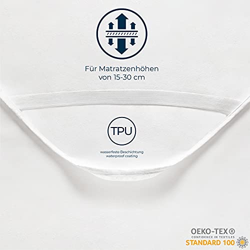 Matrasbeschermer, 180 x 200 cm, waterdicht, ademend, kussenbeschermer, katoen