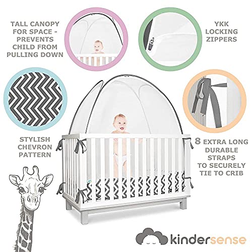 NaoSIn-Ni Baby Safety Crib Tent – Premium Peuter Crib Topper om te voorkomen dat de baby uitklimt – Doorzichtig Mesh…