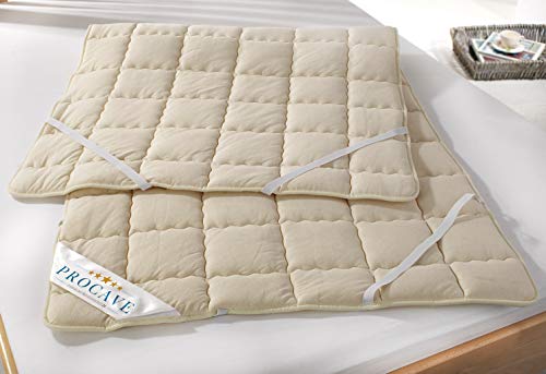 PROCAVE Zacht onderbed van scheerwol, ademende matrasbeschermer, matrashoes met 4 hoekrubbers, matrasbedekking 100×200…
