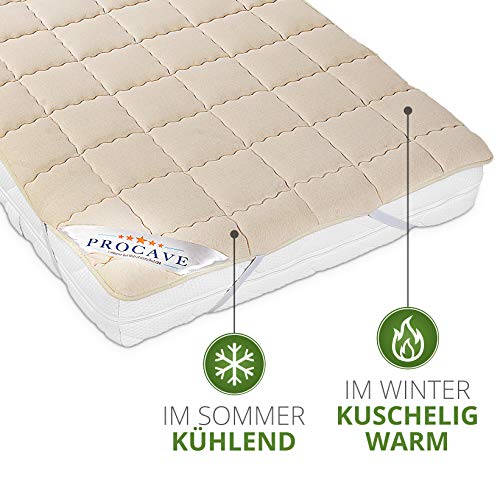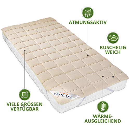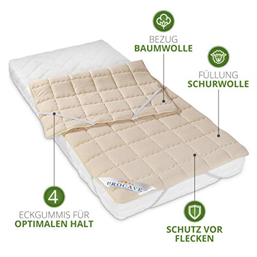 Specification: PROCAVE Zacht onderbed van scheerwol, ademende matrasbeschermer, matrashoes met 4 hoekrubbers, matrasbedekking 100×200…