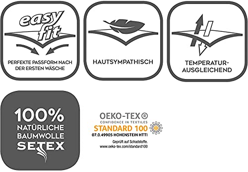 Temperatuurregulerend en huidvriendelijk door 100% ademend katoen, kookvast tot 95 graden – perfecte pasvorm na de eerste wasbeurt