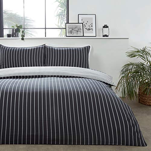 Geef je slaapkamer een frisse, moderne uitstraling met deze mini gestreepte omkeerbare dekbedovertrek.