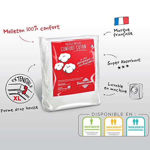 Specification: Sweethome Matrasbeschermer, 90 x 190/200 cm, molton, 80% katoen, zeer absorberend, matras-vorm, machinewasbaar