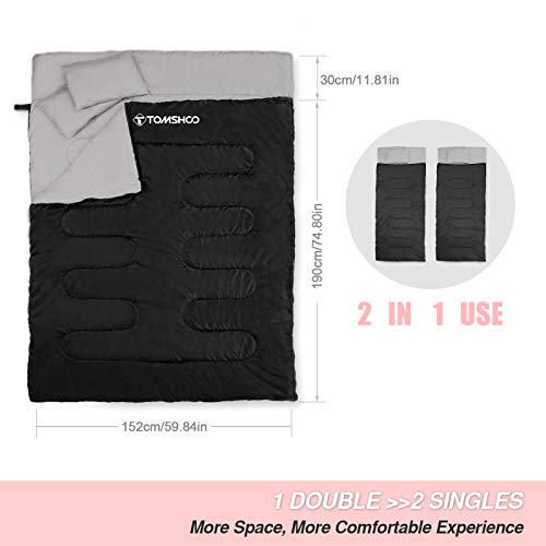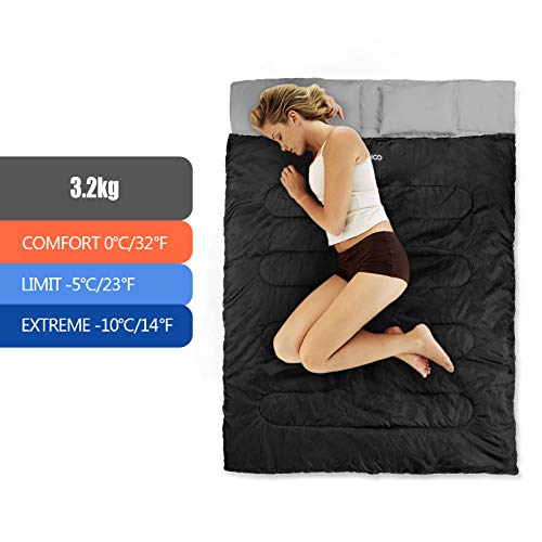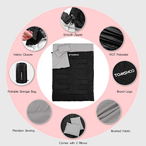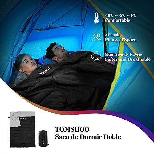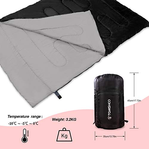 Specification: TOM SHOO dubbele slaapzak, slaapzak 2 personen, dubbele slaapzak volwassenen met 2 kussens en draagtas, comfortabele…