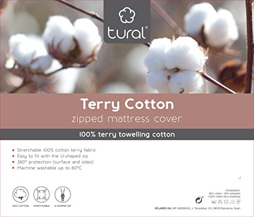 Tural – Matrashoes met Rits, Elastische Matrasvernieuwer Absorberende 100% Katoenen Badstof. Maat 160×190/200 cm. Voor…
