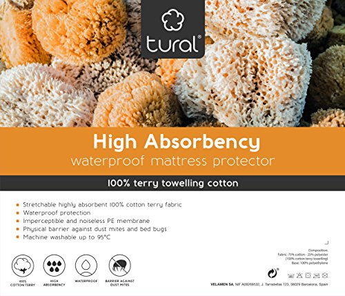 Tural – Waterdichte Matrasbeschermer. Antimijt 100% Katoenen Machine Wasbaar Matrashoes. Maat 80×190/200 cm. Voor…
