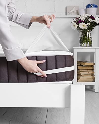 ✓ 100% Waterdicht, Ademend : Waterdichte en ademende matrashoes met TPU-membraan. Betrouwbare bescherming tegen alle vloeistoffen zoals zweet, urine of lichaamsvloeistoffen. Door het zeer goede ademende vermogen is het ontstaan van slechte geuren absoluut niet mogelijk.