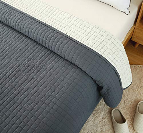 WOLTU 1 Stuck Bedsprei 220x240cm voor het hele seizoen,Sprei Dekbedovertrek in Polyester,Donkergrijs+Gebroken Wit…