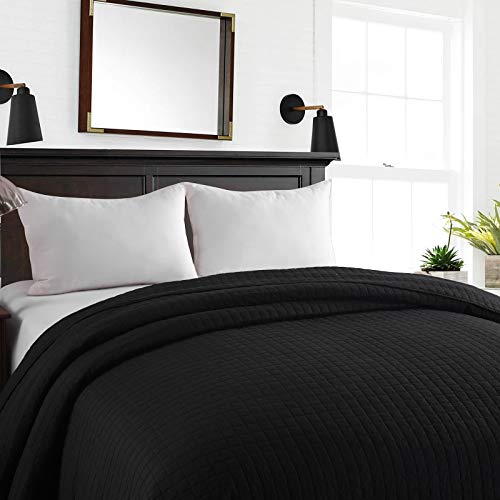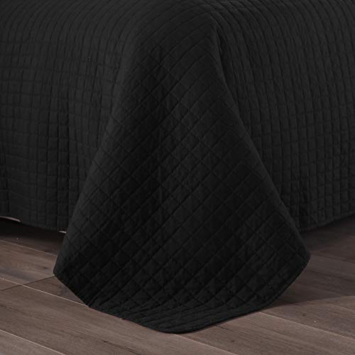 WOLTU Bedsprei Dekbedovertrek 240x260cm in Polyester,Sprei Zacht met gewatteerd,Zwart BWP5018sz04