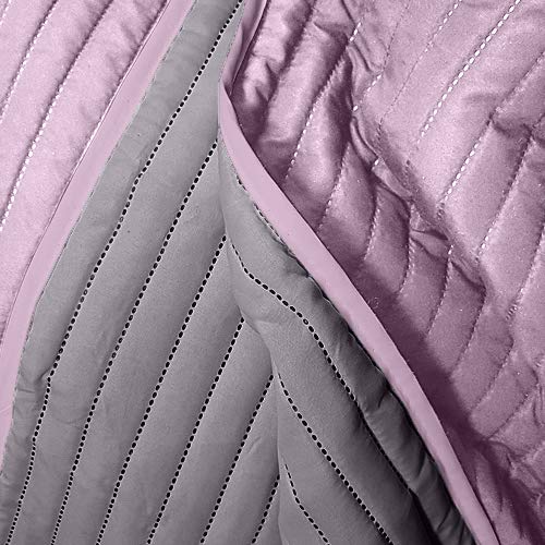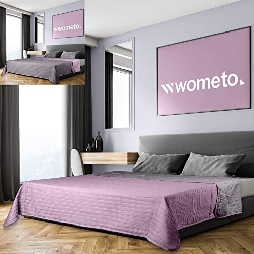 WOMETO oekoTex Sprei, 220 x 240 cm, microvezel overtrek, roze grijs gewatteerd, omkeerbaar design, XXL bank, bed…