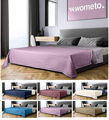 Specification: WOMETO oekoTex Sprei, 220 x 240 cm, microvezel overtrek, roze grijs gewatteerd, omkeerbaar design, XXL bank, bed…