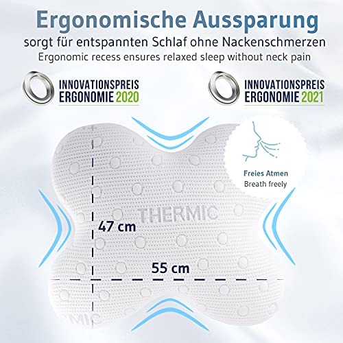 ➤ WARMTE- & VOCHTREGULERING – Warmteregulerende microcapsules in de speciale thermische overtrek en de in het kussen verwerkte ventilatiekanalen, zorgen voor een optimale luchtverversing en een ideale temperatuurregeling. Dit betekent minder transpireren en minder last van kou tijdens het slapen.